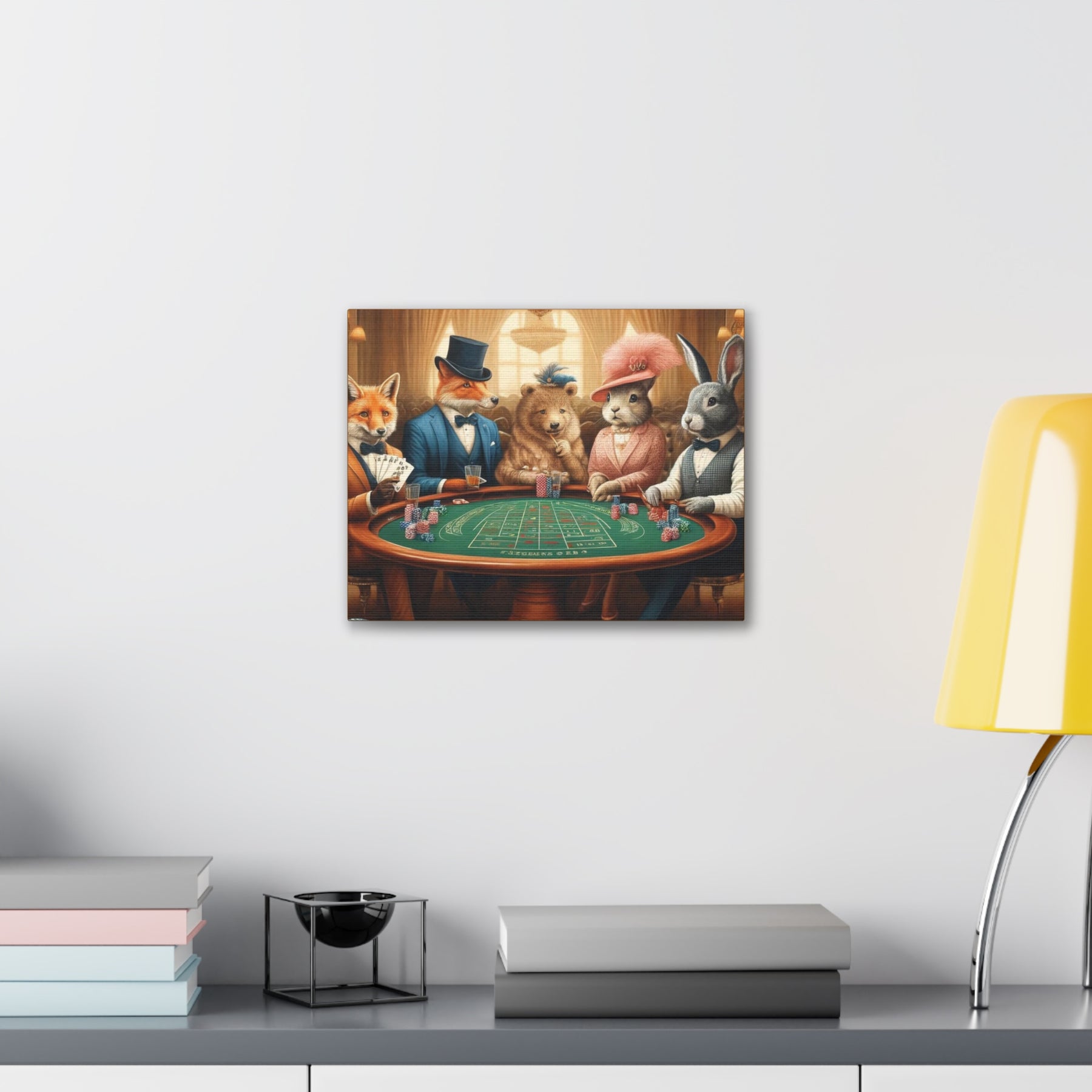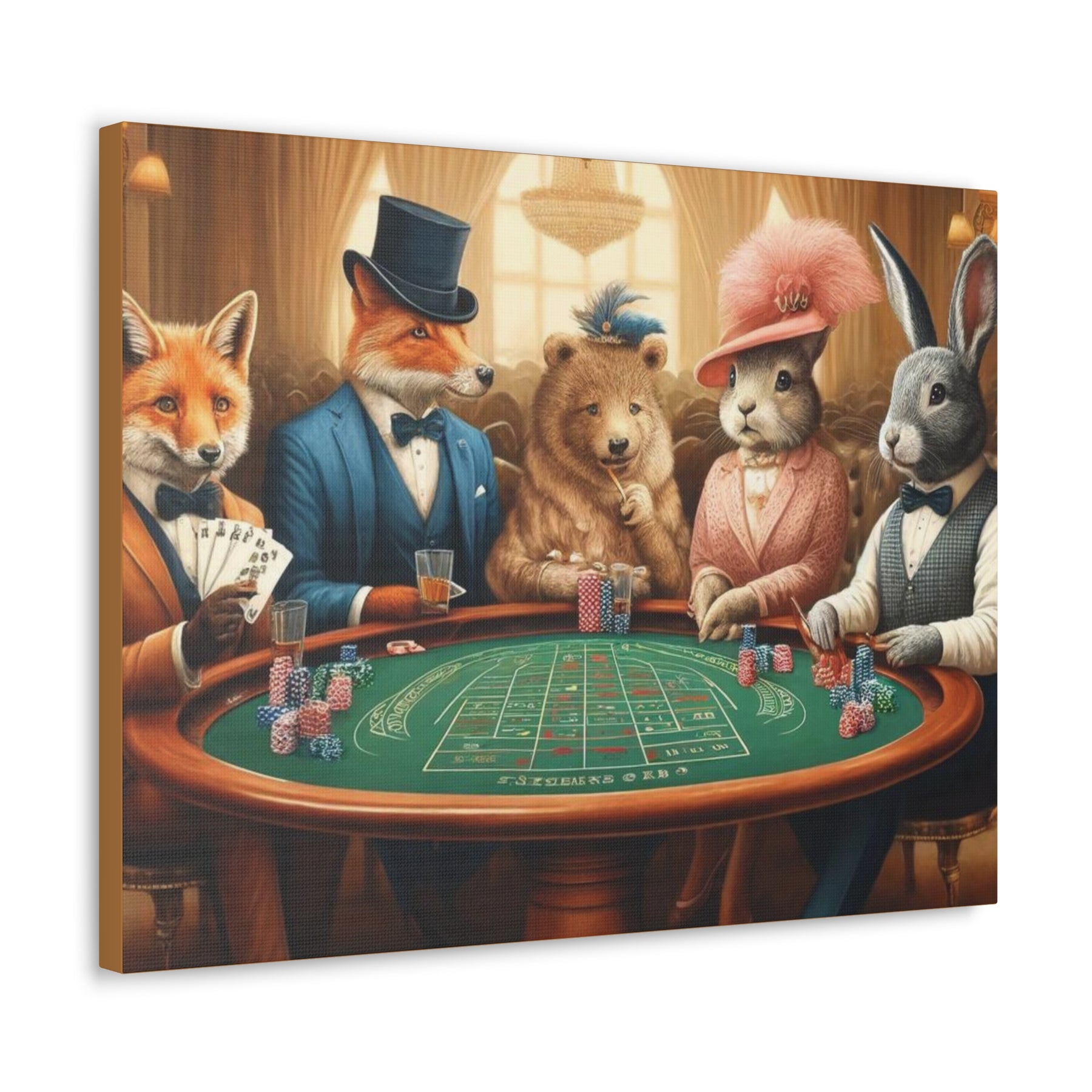 Our Dapper Forest Friends Poker Night Canvas Art turns your walls into a story! Dressed in semi-formal attire, these whimsical forest animals gather for a lively poker night -sparking smiles, laughter, and conversations. Perfect for animal lovers, humor seekers, or anyone craving quirky flair in their decor.