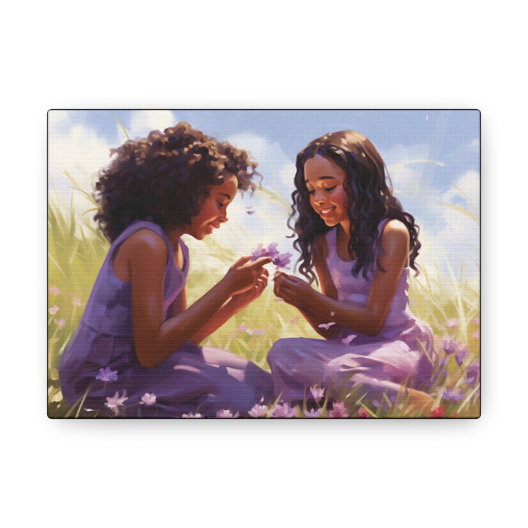 That’s why we created the Sisterly Bond African American Art Canvas—a stunning masterpiece capturing two radiant sisters in flowing purple gowns, sharing a heartfelt conversation in a serene, grassy field. It’s more than décor—it’s a tribute to love, culture, and family.