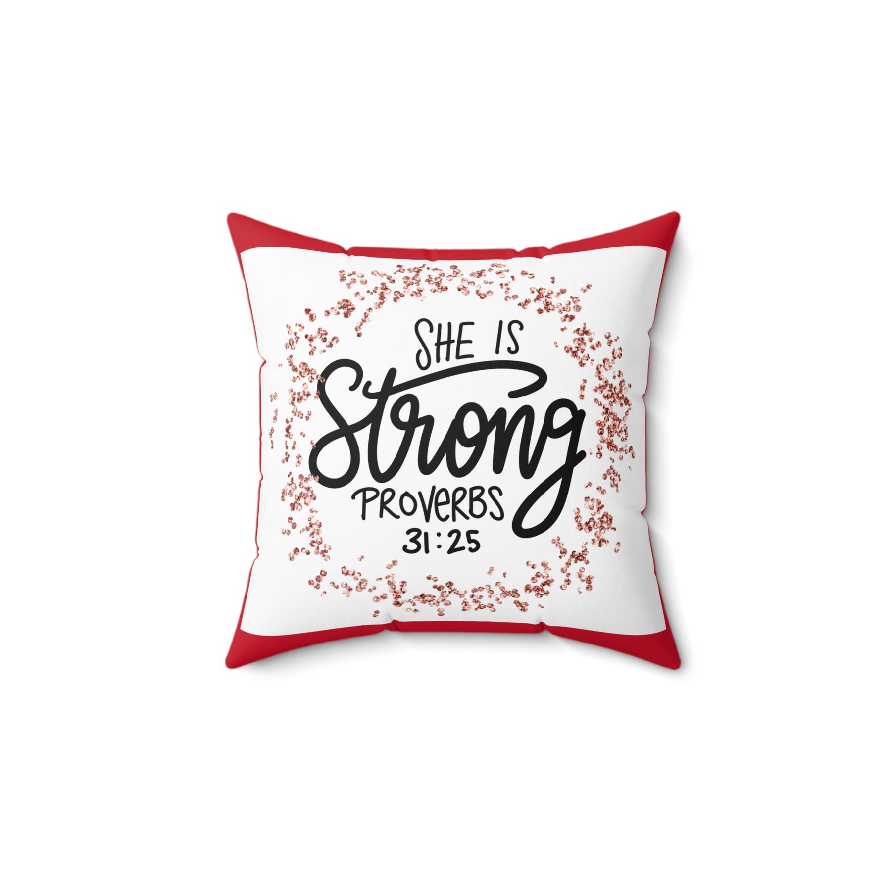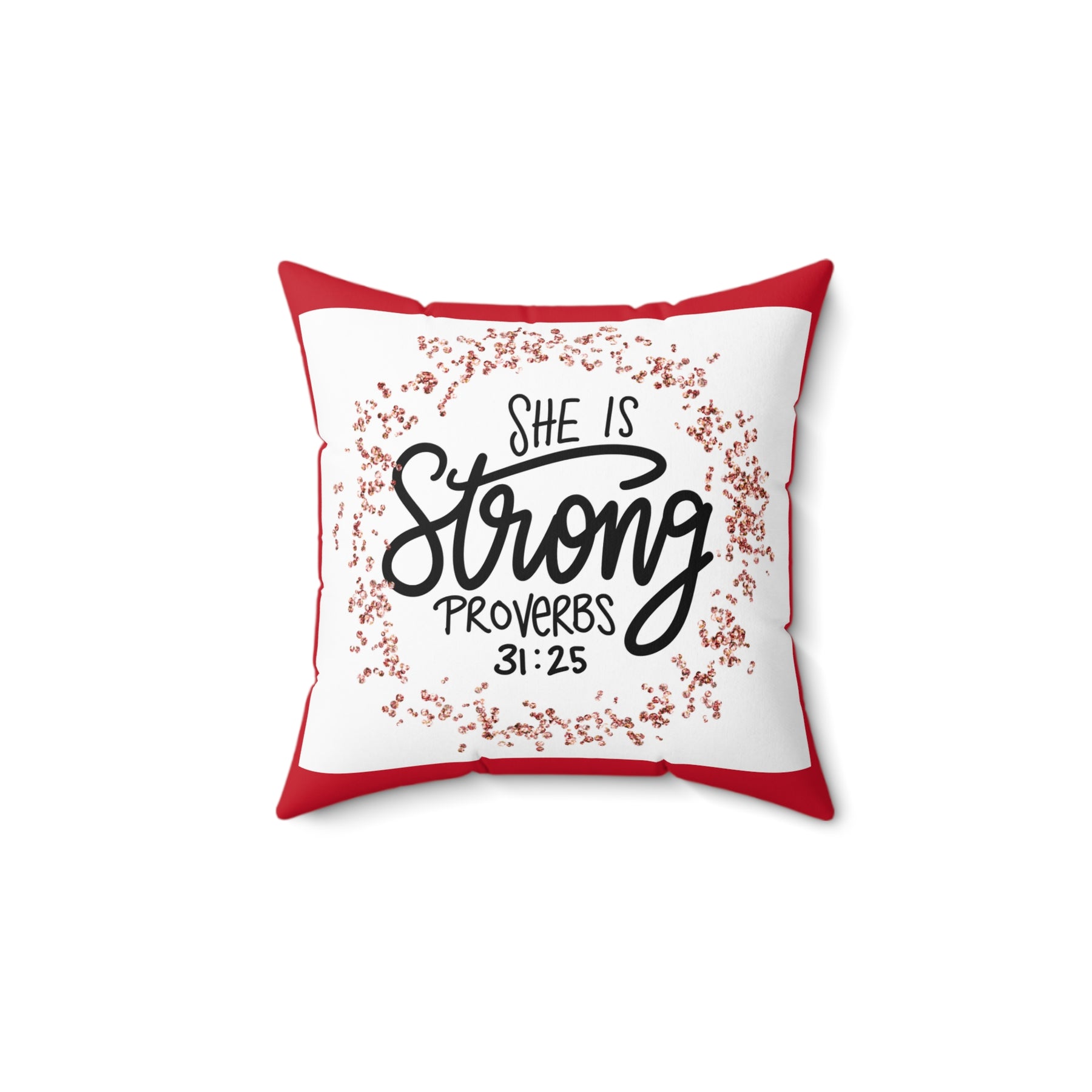 She Is Strong Motivational Faux Suede Throw Pillow – Inspirational Home Décor