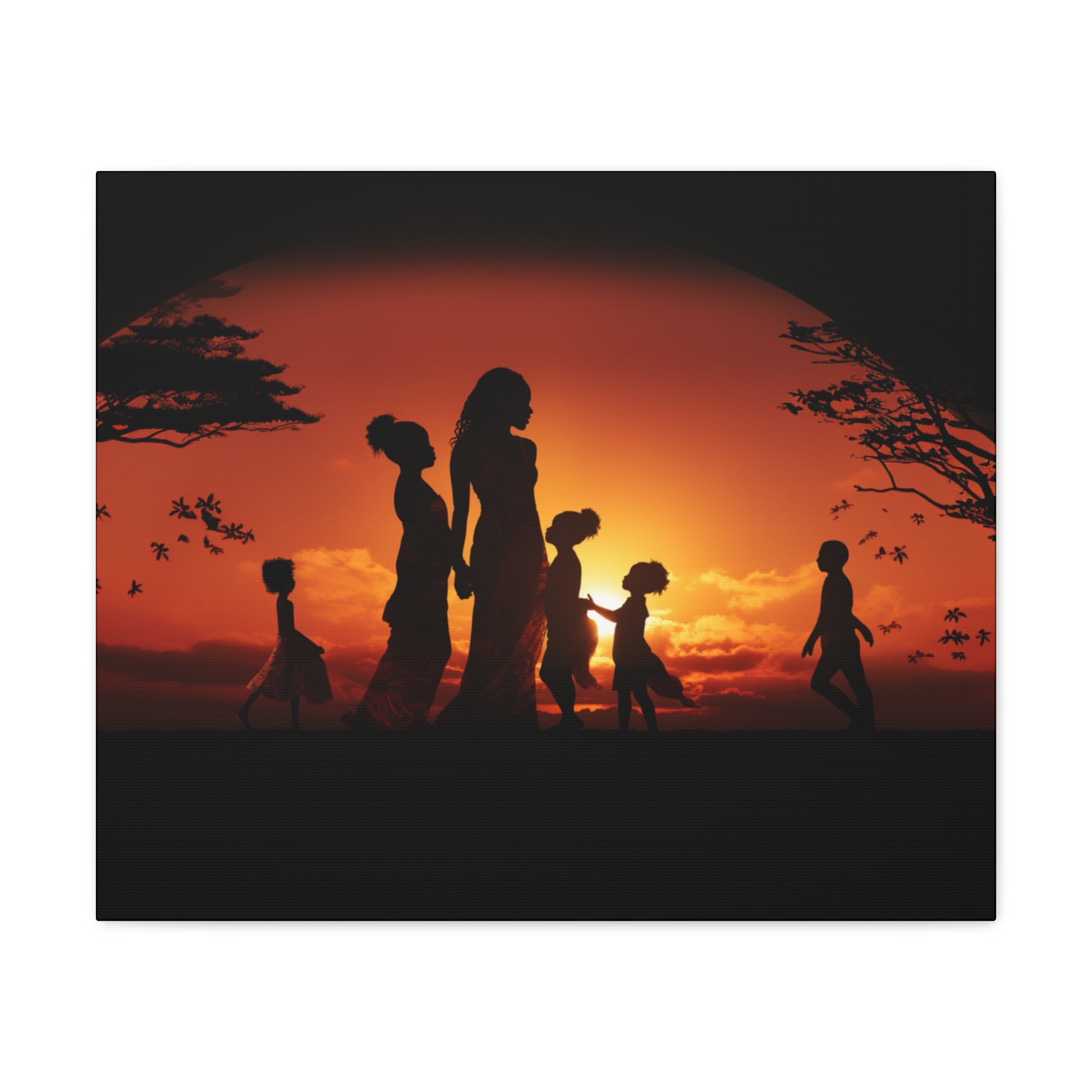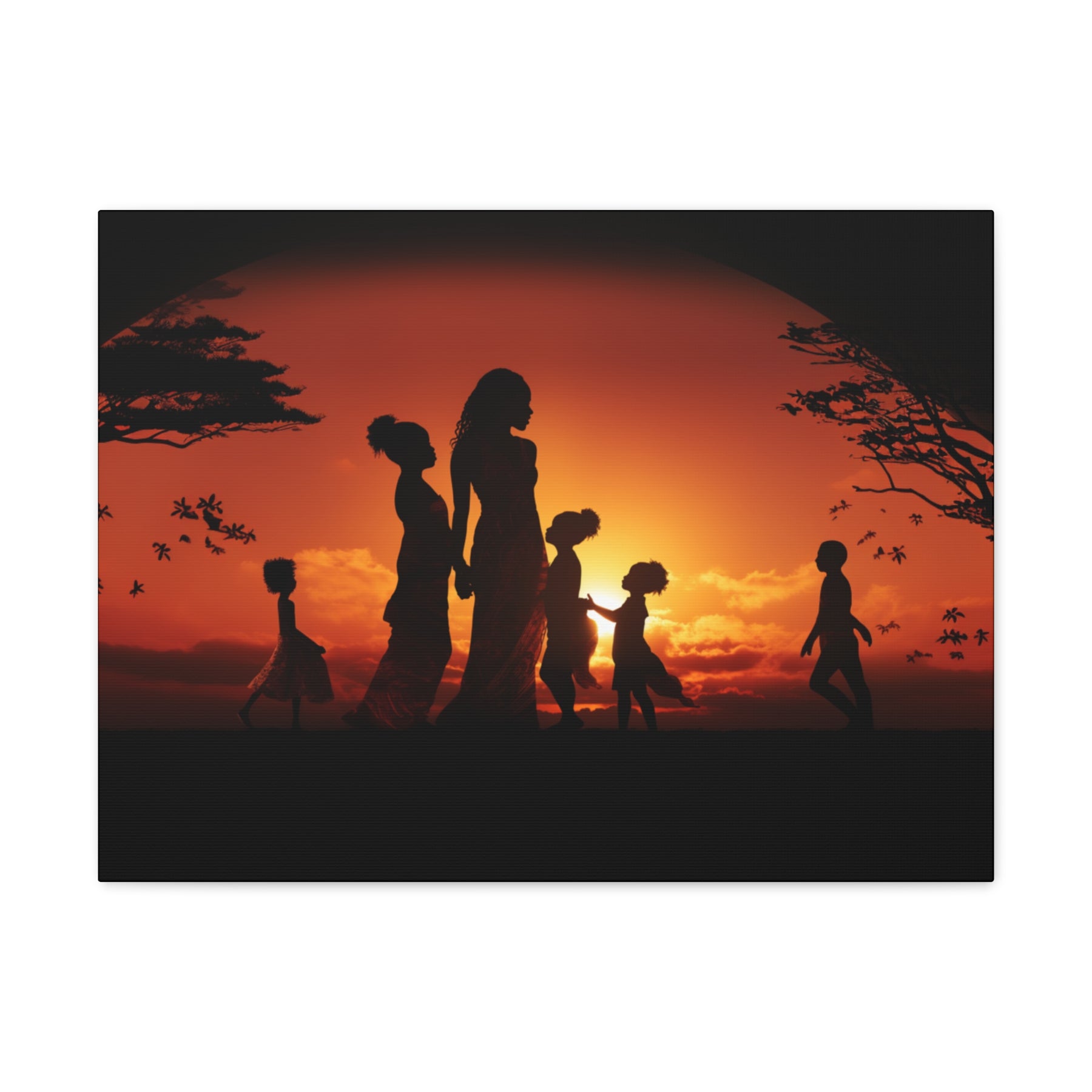 Golden Bonds' African-Themed Canvas - Celebrate Faith, Love, and Family in Every Sunset Moment - captivatingconversationsstarters