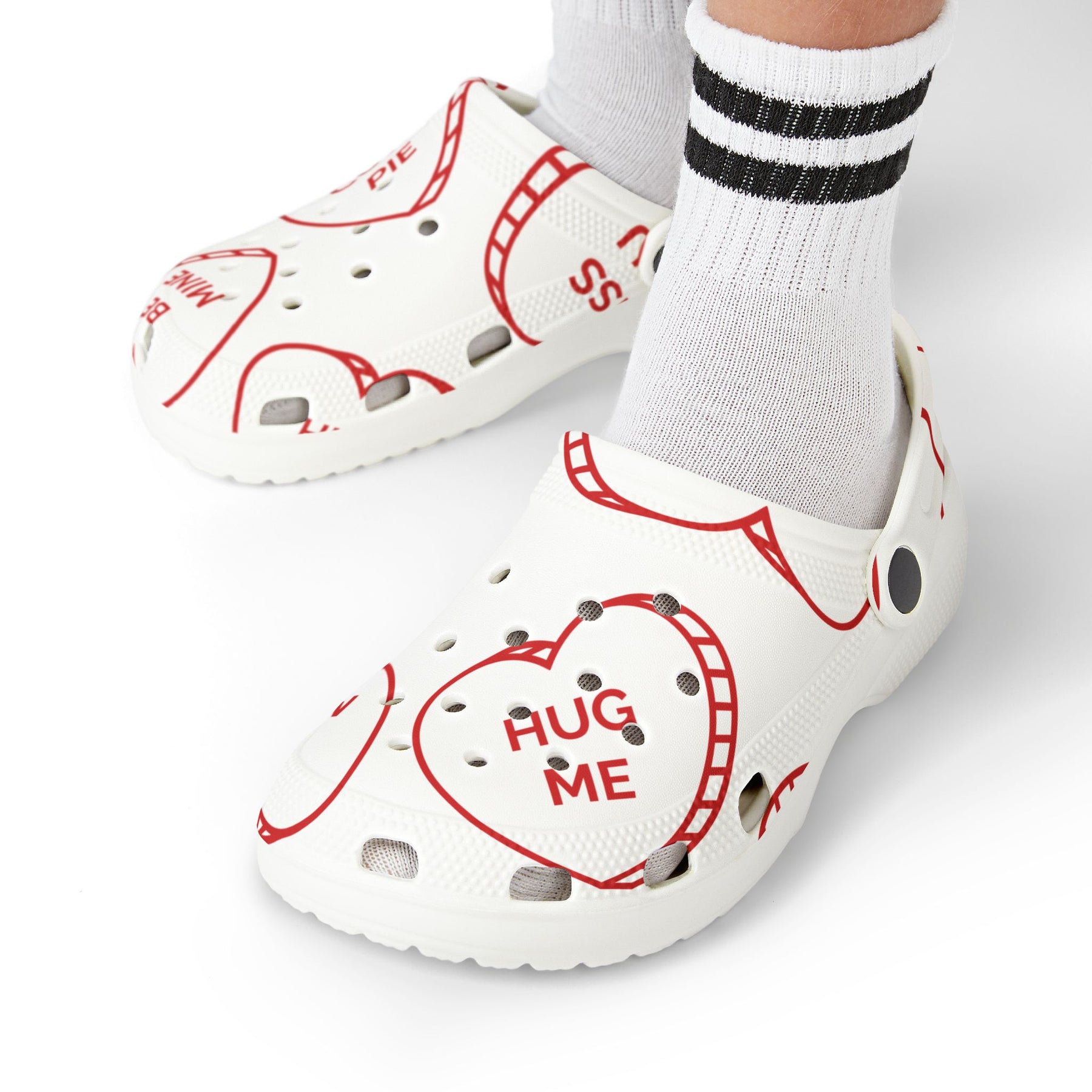 Kids Valentine’s Day Candy Heart Foam Clogs | Adorable All-Over Print with Fun Phrases - captivatingconversationsstarters