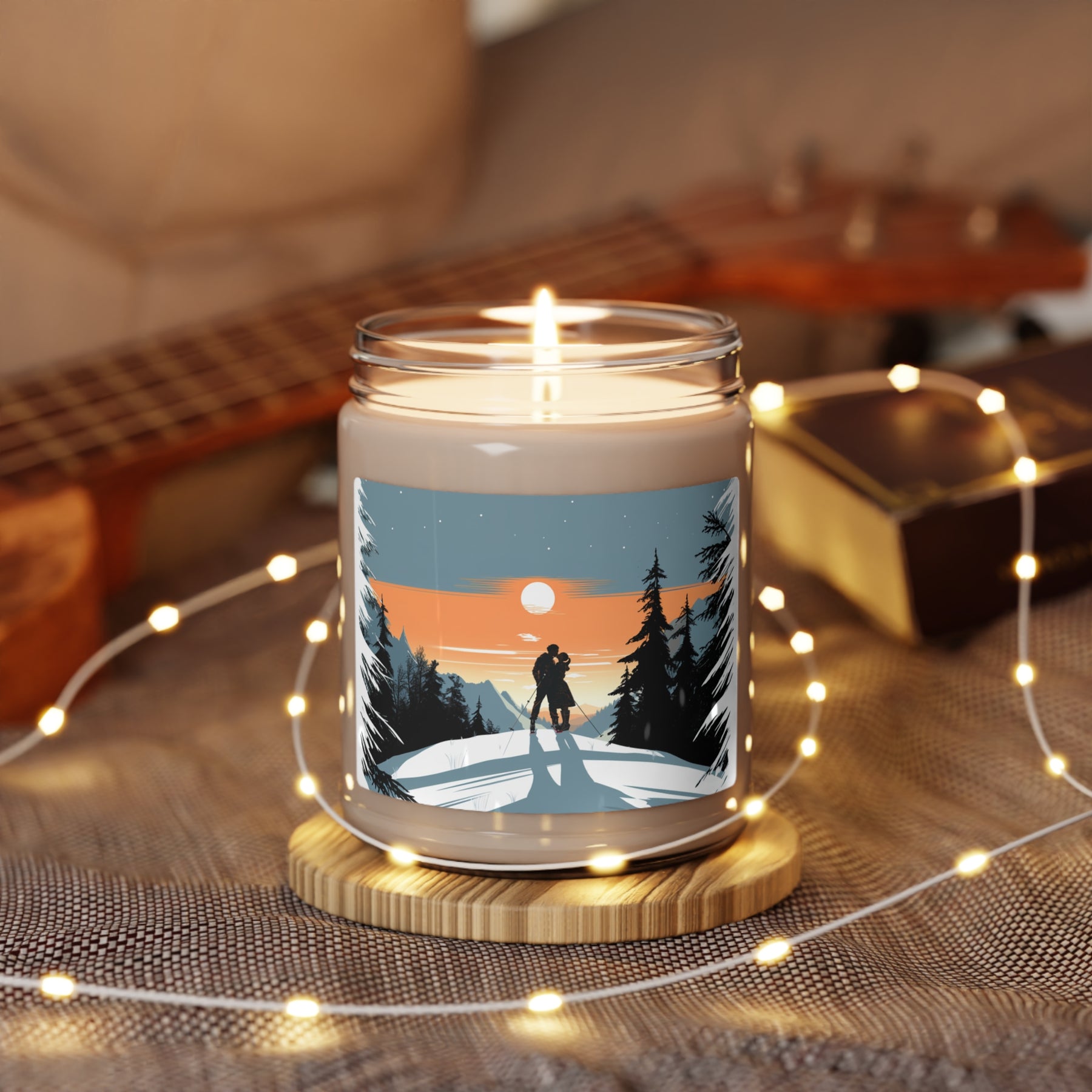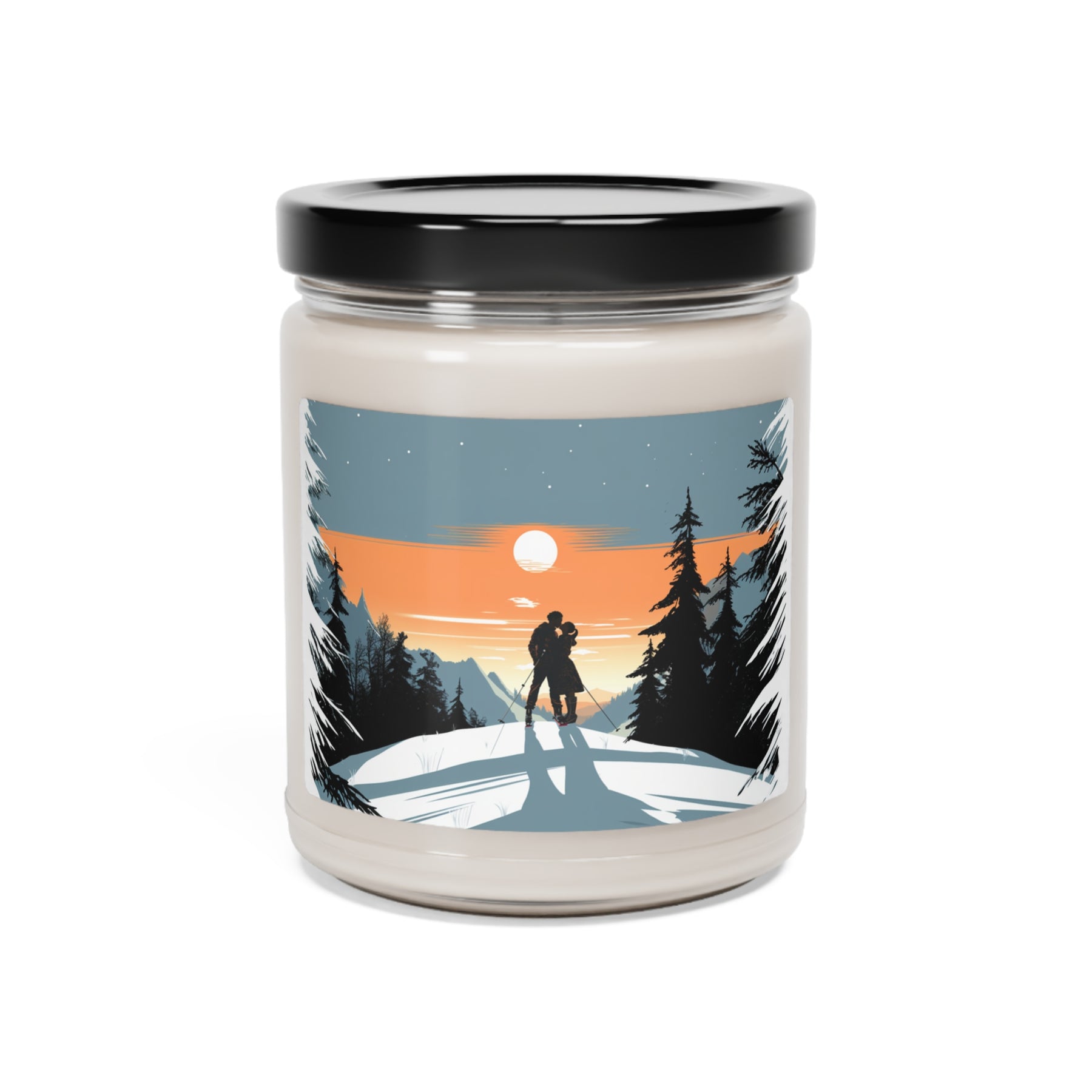 Aromatherapy Soy Candle for Connection, Romance & Spiritual Rejuvenation. Discover the magic of unity and serenity with Speak Life and Believe's "Sacred Love at Summit Sunset" aromatherapy candle. Crafted with the utmost love and care, this exquisite soy candle serves as a symbol of two souls connecting amidst the magnificence of nature's grandeur—a couple on skis, sharing a loving kiss on a snow-covered mountain top as the sun softly sinks below the horizon. Great inspirational gift for family and friends' celebrations.