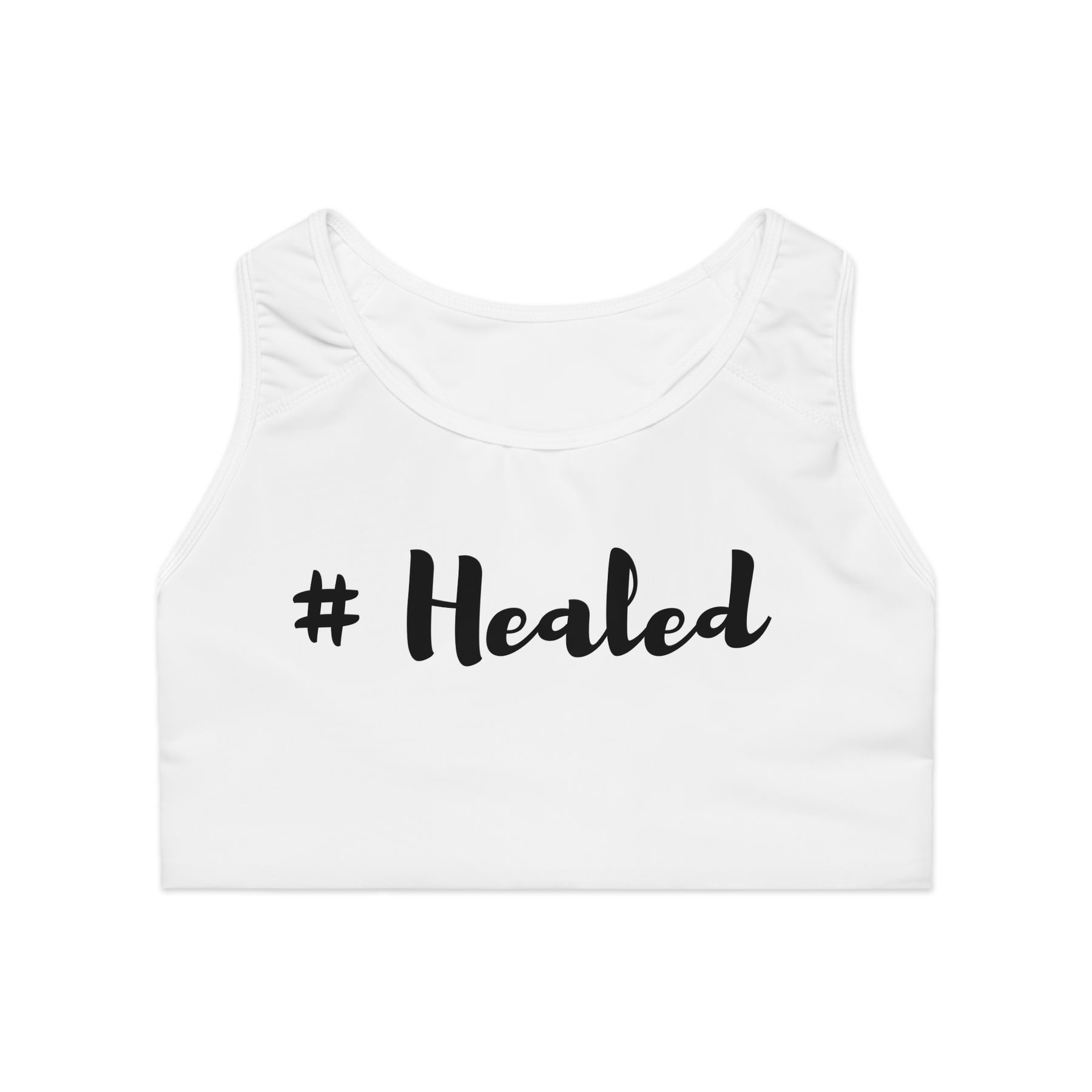 Custom 'Healed' Sports Bra – All-Over Print, Compression Fit, Moisture-Wicking Comfort