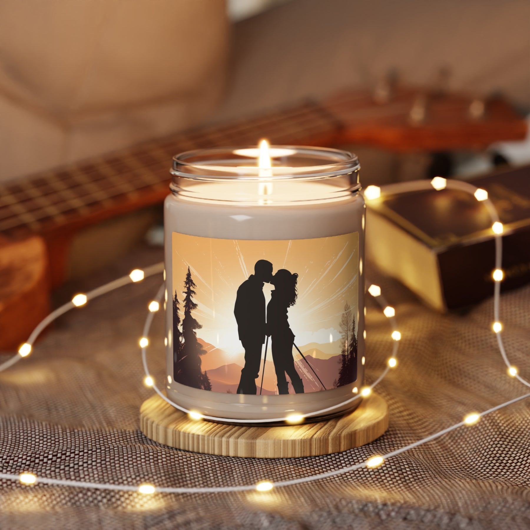 Sunset Embrace: A Mountain Romance Silhouette Candle - captivatingconversationsstarters