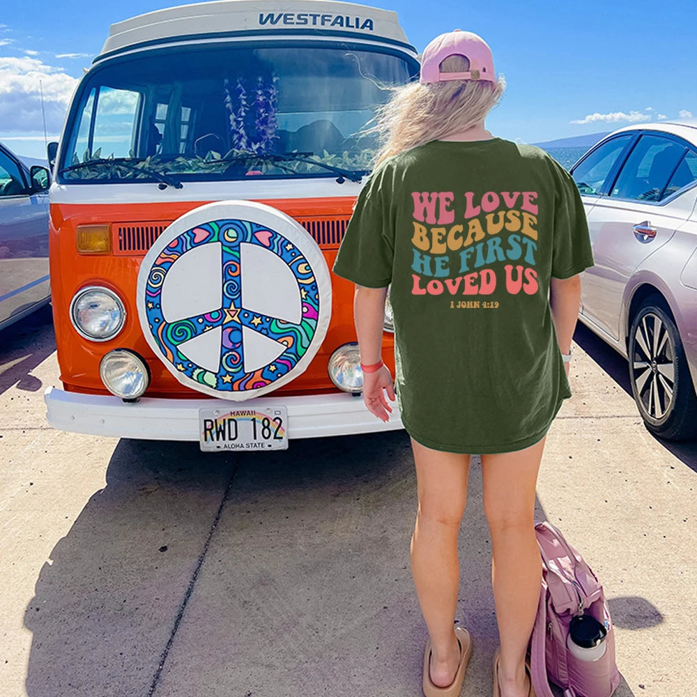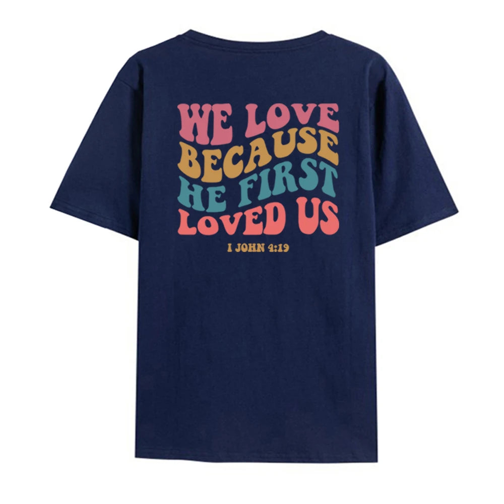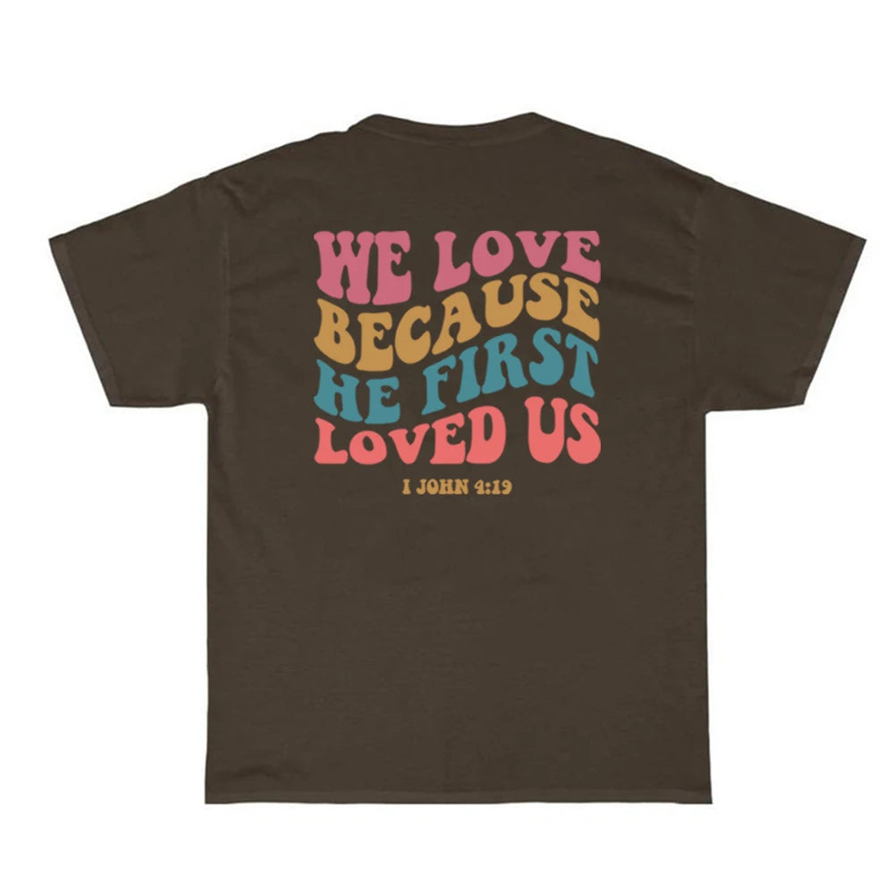 Step boldly into your beliefs with our “We Love Because He First Loved Us” Christian T-Shirt. Featuring the beloved verse from 1 John 4:19, this shirt is more than apparel—it’s a statement of faith, hope, and love. Designed with premium comfort and versatile style, it’s perfect for worship, outreach, or simply living out your truth every day.