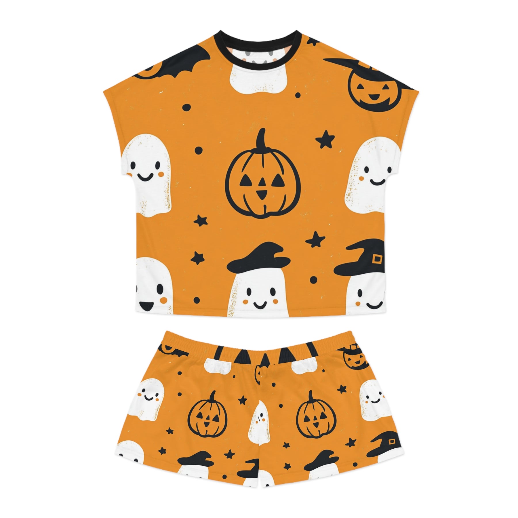 Meet the Pumpkin Spice Dreams Women’s Halloween Pajama Set - your ultimate fall night essential! Crafted in vibrant orange with playful, black-outlined pumpkins, these PJs bring Halloween vibes while keeping you wrapped in buttery-soft comfort. Whether you’re binging Hocus Pocus, sipping cocoa, or hosting a haunted sleepover, you’ll look boo-tiful and feel amazing.